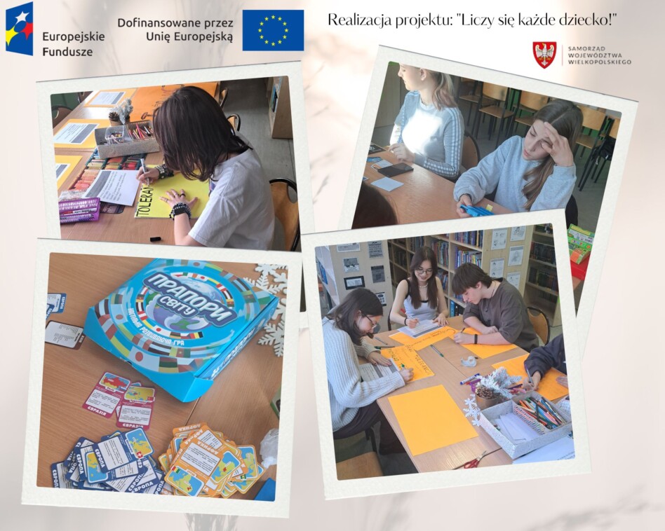 Kolejnym istotnym działaniem były zajęcia pod hasłem „Tolerancja i szacunek – tworzymy plakat promujący wartości, które łączą”. Uczniowie wspólnie przygotowywali plakat ilustrujący wartości tolerancji i szacunku wobec innych kultur, języków i tradycji. Podczas pracy w grupach dzielili się swoimi spostrzeżeniami i doświadczeniami, ucząc się, jak wyrażać myśli w formie artystycznej. Działania te sprzyjają budowaniu otwartej i przyjaznej społeczności szkolnej. Wyniki pracy uczniów już wkrótce będzie można podziwiać na gazetce bibliotecznej.